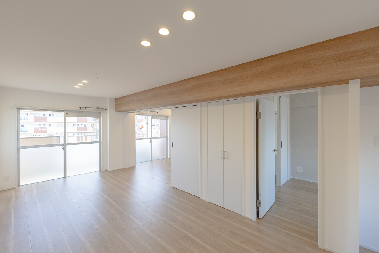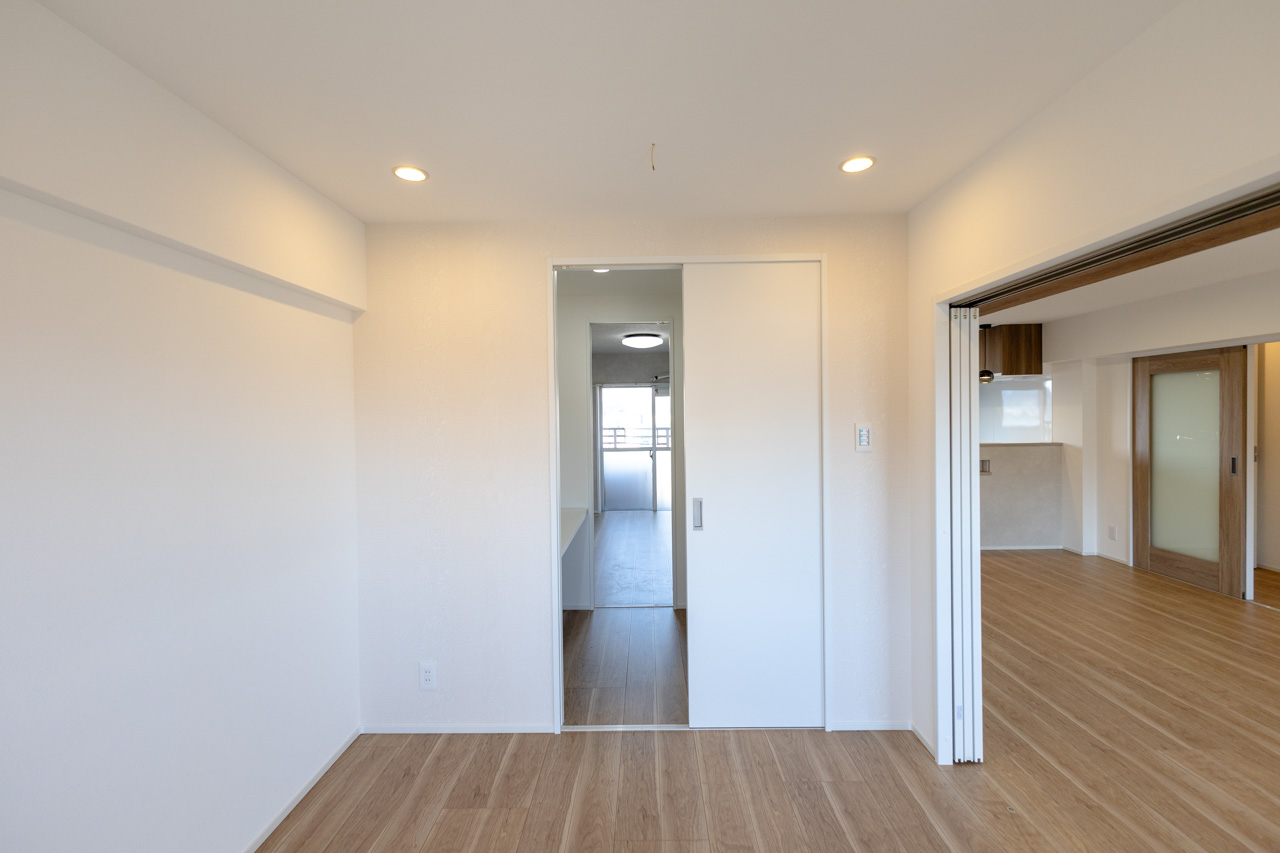 ◎リビング横の洋室は引込戸を採用。フレキシブルに利用できる広い空間を実現しました。◎東南向きのバルコニーで陽当り・通風良好なお部屋です。