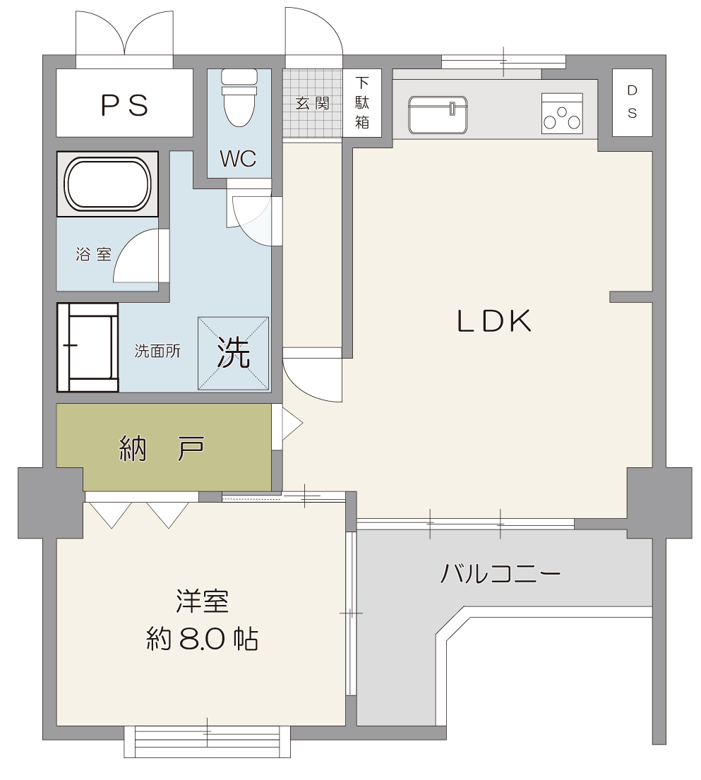 ◎北西向きの1LDK+S。LDKを広く確保し、ゆとりのある暮らしが可能です。